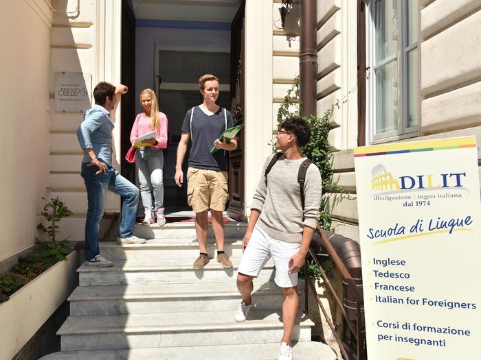 DILIT International House has been teaching Italian since 1974. Each year over 2.000 students from all around the world enrol in our Italian courses. Besides the courses in General Italian there are courses in Business Italian, Italian Cooking and Wines, Art and Culture, Summer courses in a beautiful country club on the Roman coast, the special programme "Rome for 50+", including the course of Italian and social / cultural activities, the School Year Programme, the Internship Programme and "Italian out there". The school has a snack bar, a small garden, spacious terraces, a language laboratory, a video room and an internet point (free of charge). A rich cultural programme (films, seminars, walks through the city, excursions, guided tours) is organised. As Italians study other languages at DILIT, there are ample opportunities to socialise with them. The school offers an accommodation service in families, shared flats, Bed & Breakfasts and Hotels.