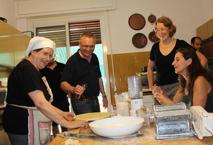 - Cooking lessons that take place twice a week, every Wednesday and Friday from 4.00 PM until 8.00 PM at the cook’s home – a beautiful apartment in the centre of Sanremo with a large terrace where one can enjoy a nice view of the city. The cook is very experienced, speaks slowly and introduces students into the secrets of Italian cuisine and the Ligurian specialities. The dishes prepared will then be served and accompanied by Italian wines.