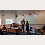 - For the final 45 minute lesson each day, the students are placed into theatre project groups, working together with their teachers to create an original play, which is then performed to the whole school at the end of the course.
